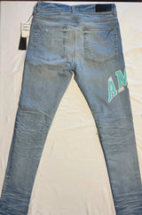 Pantalón denim en azul medio con bordado lateral que añade un toque distintivo y moderno. Su diseño equilibra lo casual con lo premium, ofreciendo un ajuste cómodo y una estética actual perfecta para el día a día.