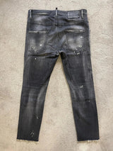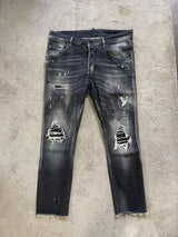 Pantalón denim en gris oscuro con acabado distressed que aporta un look urbano y actual. Ideal para quienes buscan un estilo moderno con un toque diferente.